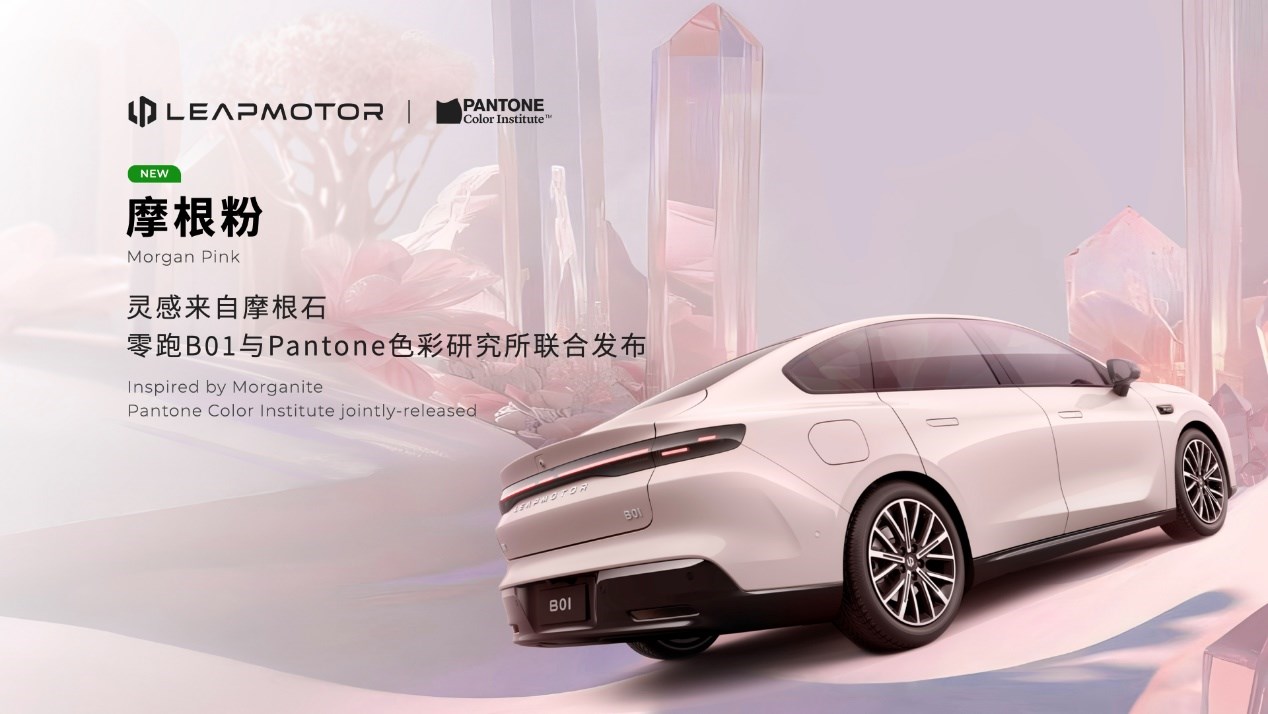 新車推出了8種車身顏色。新亮相的"摩根粉"是零跑與國際知名色彩機構——Pantone潘通,共同發(fā)布的全新配色,摩根石因含有微量錳元素,金屬漆面在陽光下呈現(xiàn)躍動的浪漫粉色微光,承載著自信與勇氣的美好寓意。
