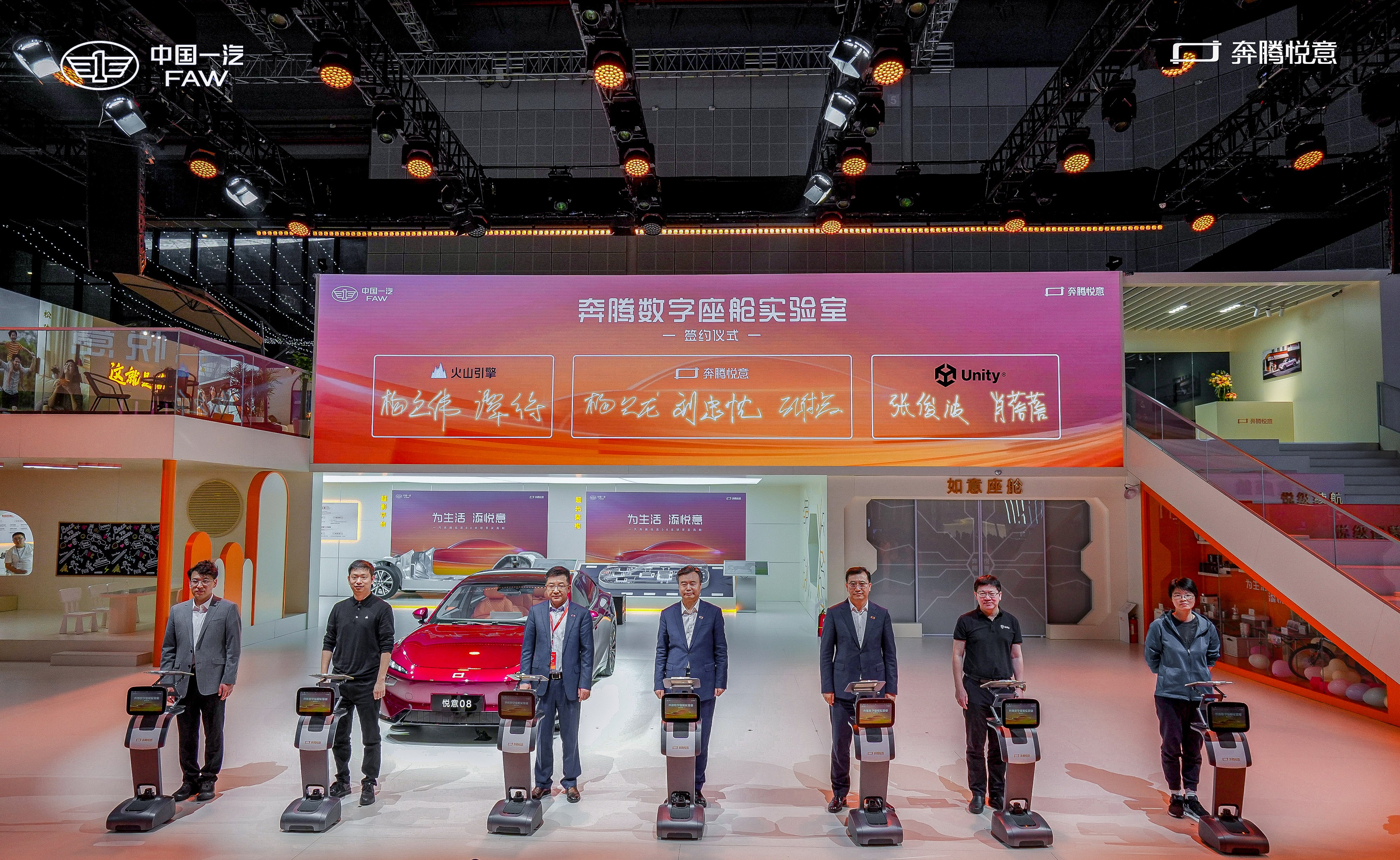 傳承一汽70余年造車底蘊,基于一汽奔騰自主創(chuàng)新研發(fā)實力,以及生態(tài)鏈合作伙伴協(xié)同共創(chuàng)的聚合效應(yīng),奔騰悅意不斷豐富技術(shù)儲備、擴(kuò)充未來出行生態(tài)。車展發(fā)布會現(xiàn)場,一汽奔騰還正式與火山引擎和Unity簽約,聯(lián)合成立數(shù)字座艙實驗室,為進(jìn)一步提升未來出行體驗做足準(zhǔn)備。