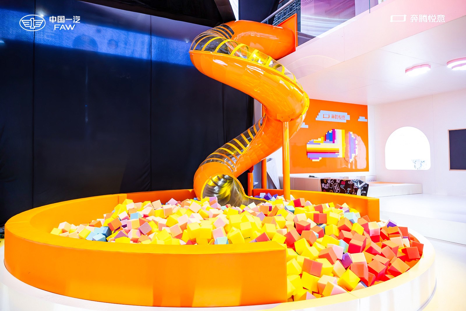 本次上海車展,就是展示悅意序列品牌調(diào)性的絕佳舞臺。步入一汽奔騰“悅意新天地”,新車、新技術(shù)、新形象躍然眼前,以晨曦咖和親和橙為主色調(diào)的街區(qū),帶來滿滿松弛感??Х葟d飄滿香氣,音樂廳流淌樂章,坐著聽歌、拍照都十分愜意。游樂場,360°螺旋云軌滑梯讓帶娃逛展的寶媽寶爸終于不用輪流看娃,環(huán)繞秋千,悠蕩間劃出自由弧線,更成為觀展者排隊打卡的潮趣天地。在這里,悅意的含義有了最直觀的表達(dá)。奔騰悅意讓逛車展像逛街一樣輕松愜意。