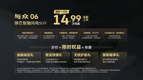 2025年4月21日,金標(biāo)大眾鋒芒智趣純電SUV與眾06(ID. 與眾2025年型款)煥新上市,為用戶帶來(lái)近50項(xiàng)軟硬件進(jìn)化并全面升級(jí)產(chǎn)品矩陣。與眾06圍繞智能化、娛樂(lè)化與個(gè)性化,實(shí)力全面提升。新車(chē)包括Pure、Pro、Ultra及Max四個(gè)版本,充分滿足中國(guó)年輕消費(fèi)者對(duì)出行體驗(yàn)在品質(zhì)、科技及情感交互等多維度的需求。