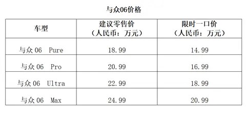 Pure與Pro、Ultra、Max共同組成了與眾06的多元化版本選擇,可以滿足不同用戶的多場(chǎng)景用車(chē)需求。用戶可根據(jù)自身預(yù)算與使用習(xí)慣靈活選擇,在確保核心體驗(yàn)的同時(shí),兼享合理配置與優(yōu)質(zhì)價(jià)值。