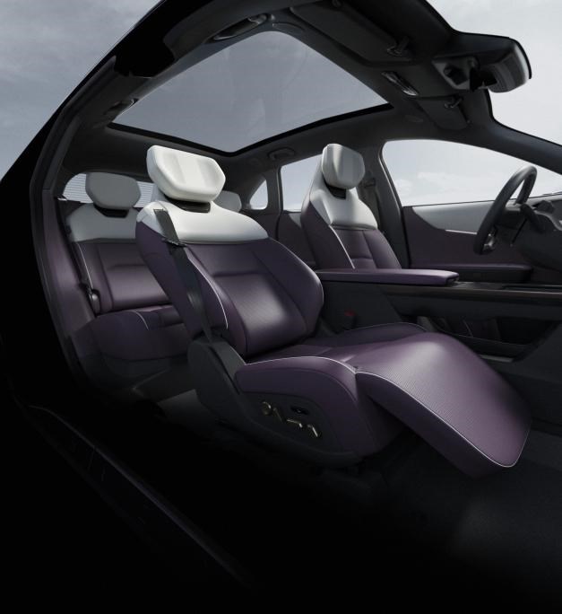 EZ-60在SUV設(shè)計領(lǐng)域首次搭載了9風(fēng)道設(shè)計。第一,降低了風(fēng)阻系數(shù),整體風(fēng)阻優(yōu)化60.8 conuts,讓續(xù)航里程提升41公里;其次,降低了行駛風(fēng)噪,車內(nèi)語音清晰度提升了8%;第三,在高速行駛時,風(fēng)道可以為后軸提供最高705N的下壓力,讓操控更加靈敏,更加平穩(wěn)。獨特的D柱風(fēng)道設(shè)計,形成了EZ-60獨特的視覺符號,進一步強化了車身的動感姿態(tài)。全新的紫色車漆,初見驚艷,再見傾心。猶如星芒初綻的暮空,真實又夢幻,神秘又尊貴,將電動車型的未來感與新生優(yōu)雅融匯于一身。