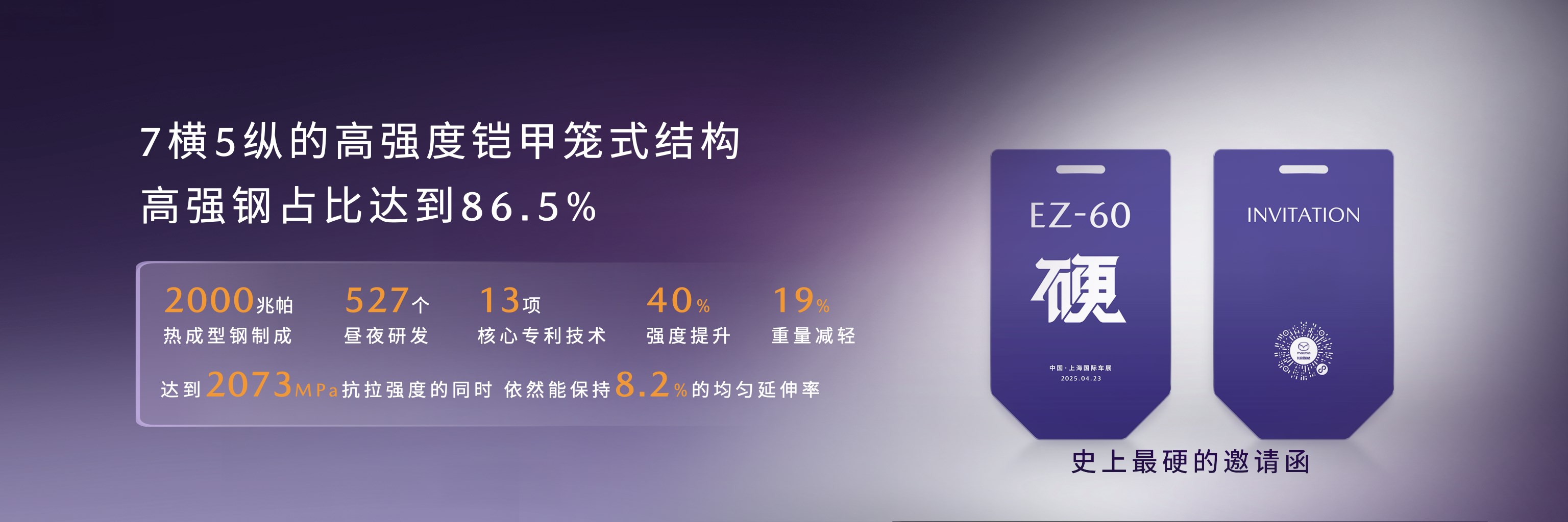 EZ-60 延續(xù)了馬自達在安全領(lǐng)域的核心DNA。發(fā)布會上,長安馬自達汽車有限公司執(zhí)行副總裁鄧智濤向參展嘉賓展示了“史上最硬的車展邀請函”——它以2,000MPa的熱成型鋼制成,取自EZ-60的車身,歷經(jīng)527個晝夜研發(fā),包含13項核心專利技術(shù),在達到 2,073MPa抗拉強度的同時,依然能保持8.2%的均勻延伸率,強度提升40%,重量減輕19%,這塊特殊的邀請函象征著長安馬自達在安全領(lǐng)域追求極致的堅定信念。