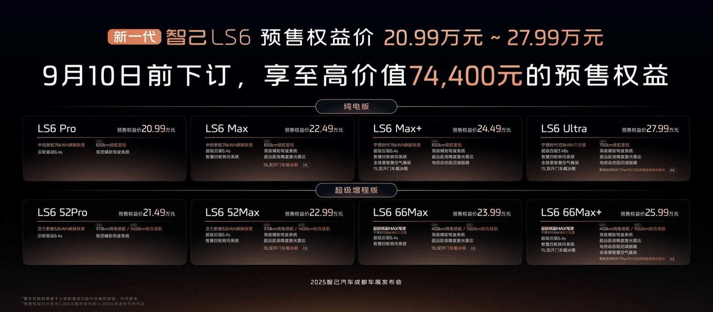 新一代智己LS6預(yù)售權(quán)益價(jià)格區(qū)間為20.99萬(wàn)元~27.99萬(wàn)元。自8月15日開(kāi)啟預(yù)售以來(lái),迅速引爆市場(chǎng),全國(guó)門(mén)店客流與訂單量雙雙大幅攀升。截至目前,預(yù)售訂單已突破48,000臺(tái)。為回應(yīng)用戶(hù)熱情,智己汽車(chē)在成都車(chē)展上官宣,再度重磅加碼預(yù)售權(quán)益,疊加16,000元的“舒享套裝”后,預(yù)售權(quán)益總價(jià)值至高74,400元,以前所未有的滿(mǎn)滿(mǎn)誠(chéng)意,讓這個(gè)時(shí)代前沿的智能出行體驗(yàn)人人可享,進(jìn)一步夯實(shí)“20萬(wàn)級(jí)大五座智能SUV首選”的標(biāo)桿地位。