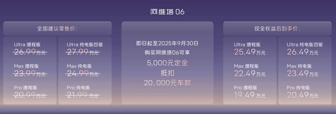 阿維塔06成為首批搭載華為乾崑ADS 4與鴻蒙座艙HarmonySpace 5的車型,并提供45.06kWh寧德時(shí)代5C驍遙超級(jí)增·混電池供消費(fèi)者選擇,升級(jí)選裝價(jià)為2萬元,即日起至9月30日,限時(shí)1萬元。隨著阿維塔06 Ultra增程版的正式上市,阿維塔06成為了行業(yè)首個(gè)雙5C超充的轎車,也是20萬級(jí)唯一能買到的5C超快充增程大電池轎車,以昆侖智慧增程、太行智控底盤、玄甲安全防護(hù)、華為乾崑智駕、華為鴻蒙生態(tài)、寧德時(shí)代雙5C超充六大硬核技術(shù)深度賦能,讓用戶輕松擁有高品質(zhì)出行體驗(yàn)。