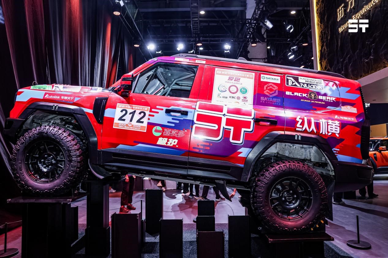 事實(shí)上,自上海車展亮相以來,G700就備受市場關(guān)注,尤其是作為唯一未上市量產(chǎn)車出戰(zhàn)2025環(huán)塔拉力賽,以5個(gè)賽段冠軍、全軍團(tuán)順利完賽的耀眼成績,證明“中國電混穿越之王”的實(shí)力,贏得越野愛好者的追捧。本屆成都車展上,傳承環(huán)塔穿越榮耀基因的G700環(huán)塔版迎來全球首發(fā)。采用典藏“烈焰”涂裝設(shè)計(jì)的G700環(huán)塔版,完美還原環(huán)塔拉力賽激情基因,并配備阿諾達(dá)氮?dú)鉁p震,支持±15mm精密高度調(diào)節(jié),兼顧沙漠飛坡與戈壁穿越的多場景需求,搭載265/70 R18黑熊AT胎、18寸越野輪轂、鋁鎂合金殿堂級(jí)底盤護(hù)板等裝備,成就賽道級(jí)全域越野性能。