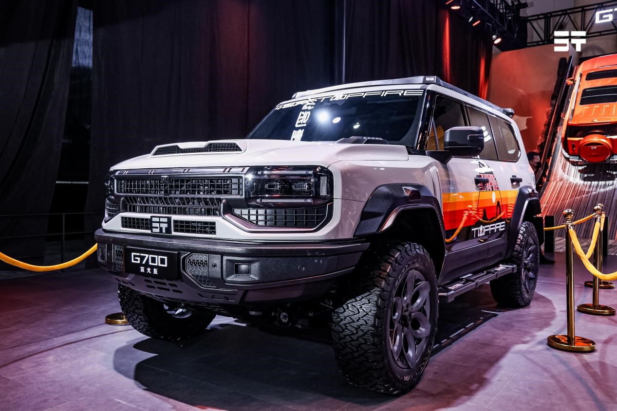 展臺(tái)上,縱橫與國內(nèi)頂級(jí)汽車改裝品牌中國頂火車會(huì)聯(lián)手共創(chuàng)的G700頂火版也吸引了觀眾的熱情圍觀。G700頂火版采用戰(zhàn)斗美學(xué)設(shè)計(jì),在保留城市舒適性的基礎(chǔ)上,通過系統(tǒng)性改造賦予其專業(yè)探險(xiǎn)?具屬性,實(shí)現(xiàn)公路巡航與荒野征服的無縫切換。