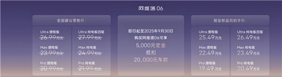 在2025成都車展期間,新款阿維塔06正式上市,此次新車在價(jià)格體系、核心配置、動力性能及外觀內(nèi)飾設(shè)計(jì)等方面均有調(diào)整,進(jìn)一步豐富了20萬級新能源轎車市場的選擇。新款阿維塔06售價(jià)區(qū)間為20.99-27.99萬元,部分車型可選裝特定配置并享受限時(shí)優(yōu)惠價(jià)。